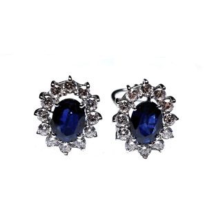 Pendientes con circonitas y Zafiro Azul en oro amarillo 18k
