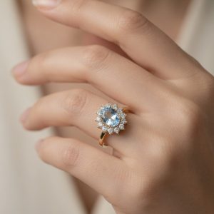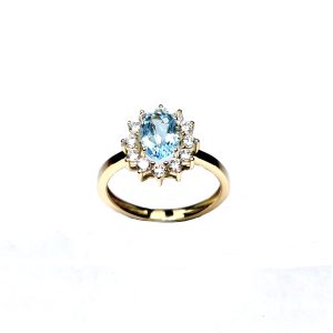 Sortija circonitas y Topacio azul en oro amarillo 18K