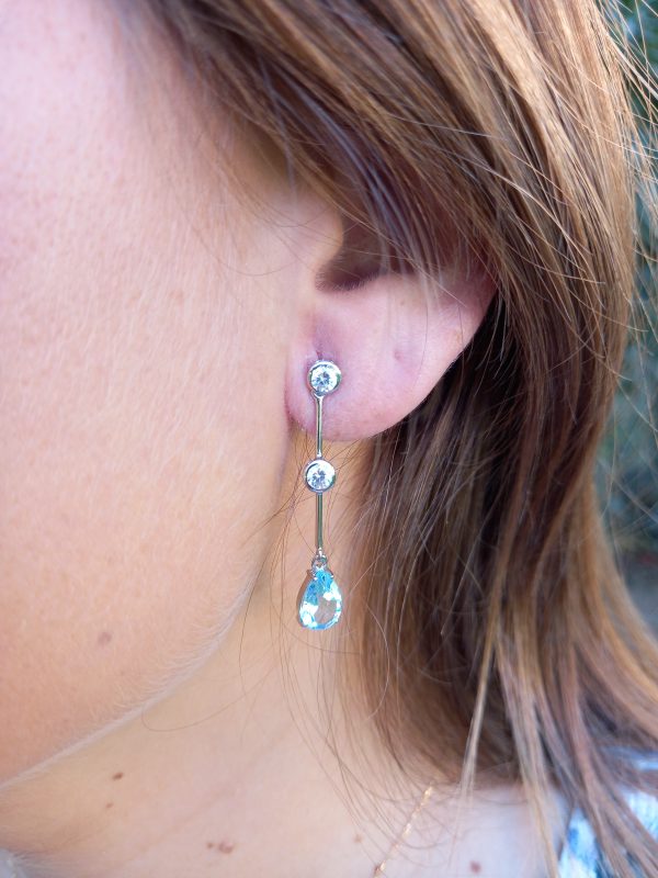 Pendientes con circonitas y Topacio azul semiprecioso
