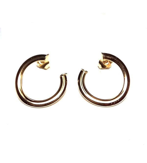 Pendientes en forma de aro muy original " aro desmentido ",tiene un diámetro de 15 mm y un grueso de 2,5 mm. Hechos en oro amarillo de 18K (1ª Ley)