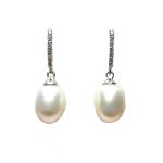Pendientes de circonitas y perla cultivada para novia en 18K