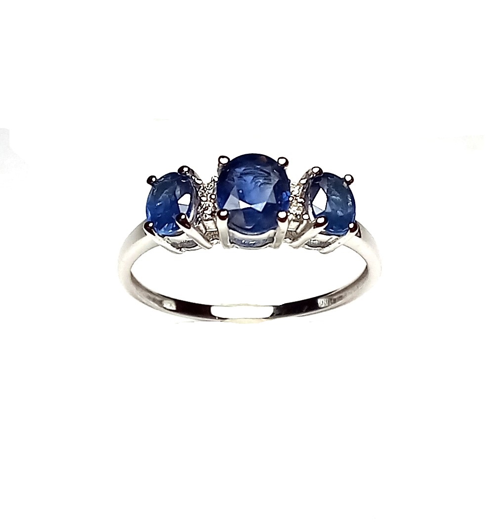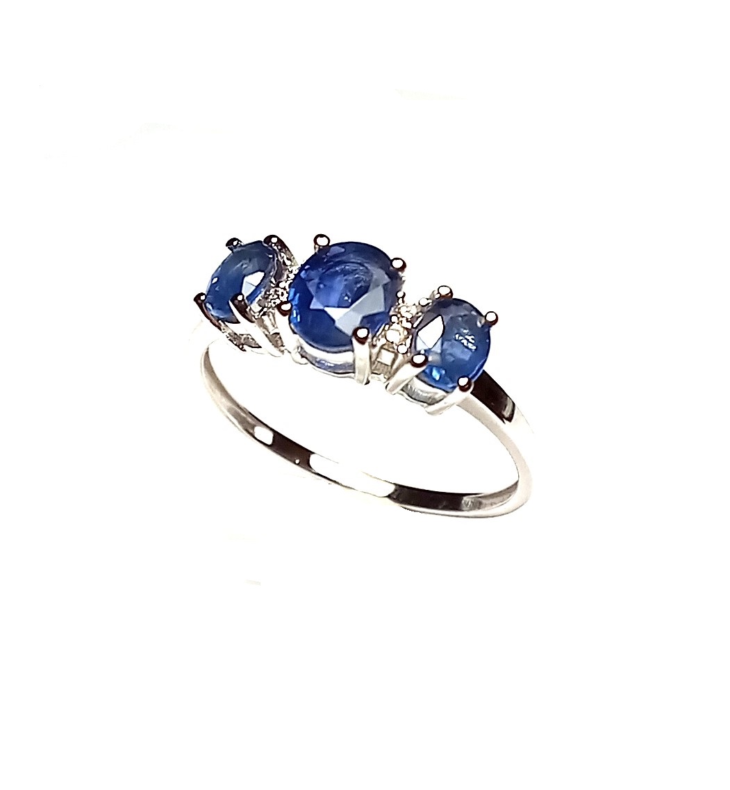 Sortija con diamantes y Zafiro Azul en oro 18K